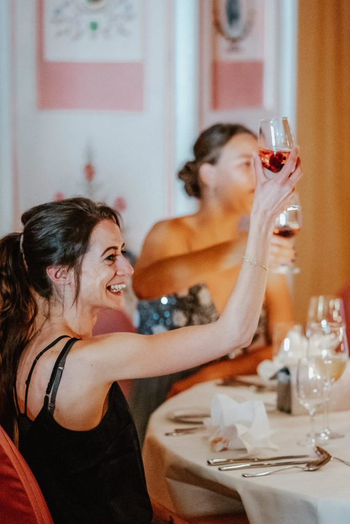 Der Empfang begann mit einem köstlichen Essen, gefolgt von Gruppen- und Familienfotos. Die prächtige Dekoration des Saals, die festliche Atmosphäre und die fröhlichen Gesichter der Gäste schufen einen perfekten Rahmen für die Feierlichkeiten. Es wurde ausgiebig gelacht, getanzt und gefeiert, bis in die späten Abendstunden.