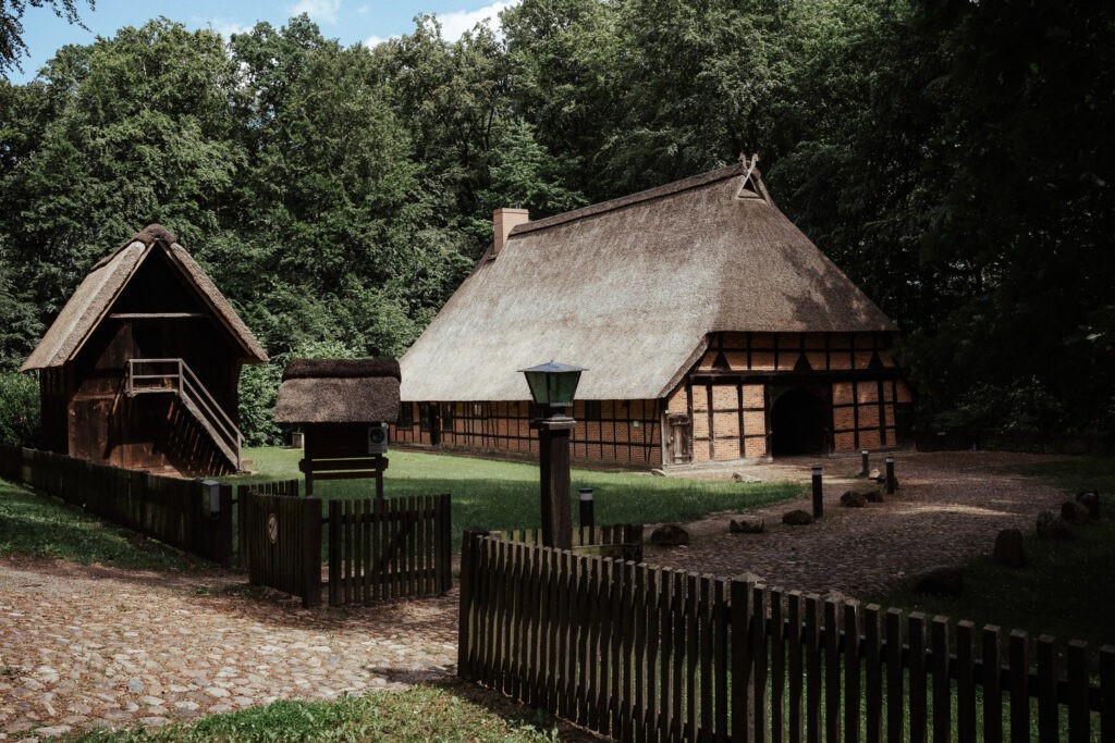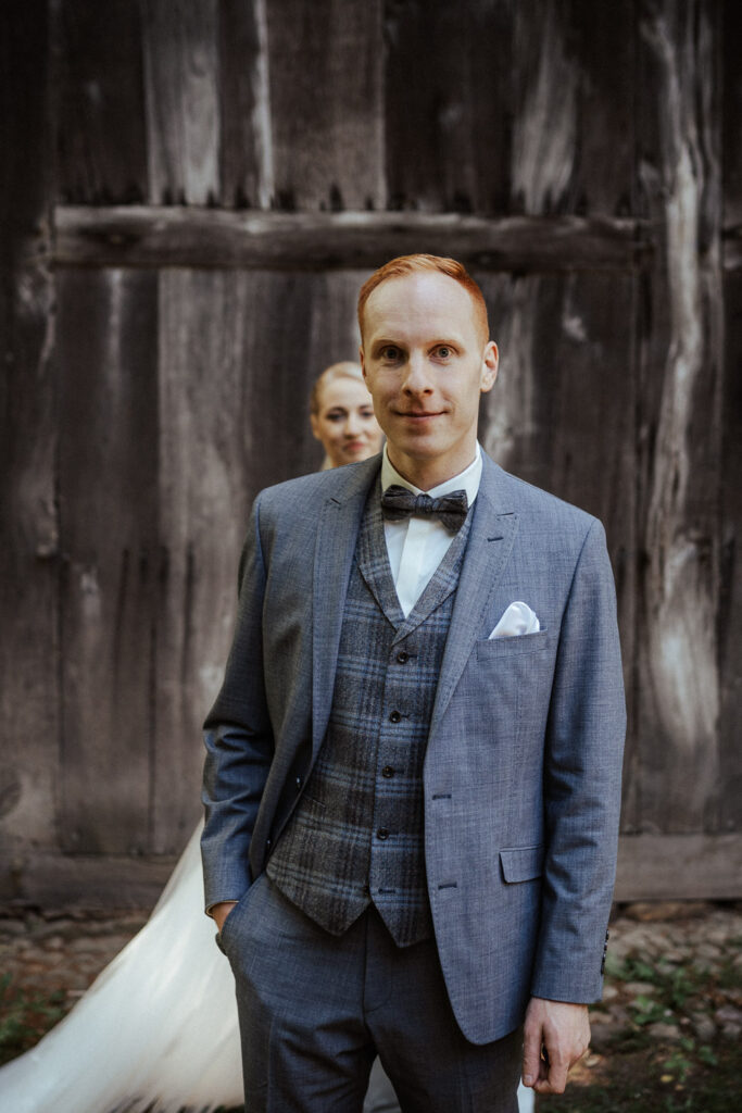 Die Hochzeitsfeier selbst fand im Ringhotel Forellenhof in der alten Scheune in Walsrode statt. Diese Location vereint rustikalen Charme mit modernem Komfort und bot den perfekten Rahmen für eine unvergessliche Feier. Der zweite Teil des Brautpaarshootings nutzte die idyllische Umgebung des Hotels und die wunderschöne alte Scheune für weitere zauberhafte Bilder.
