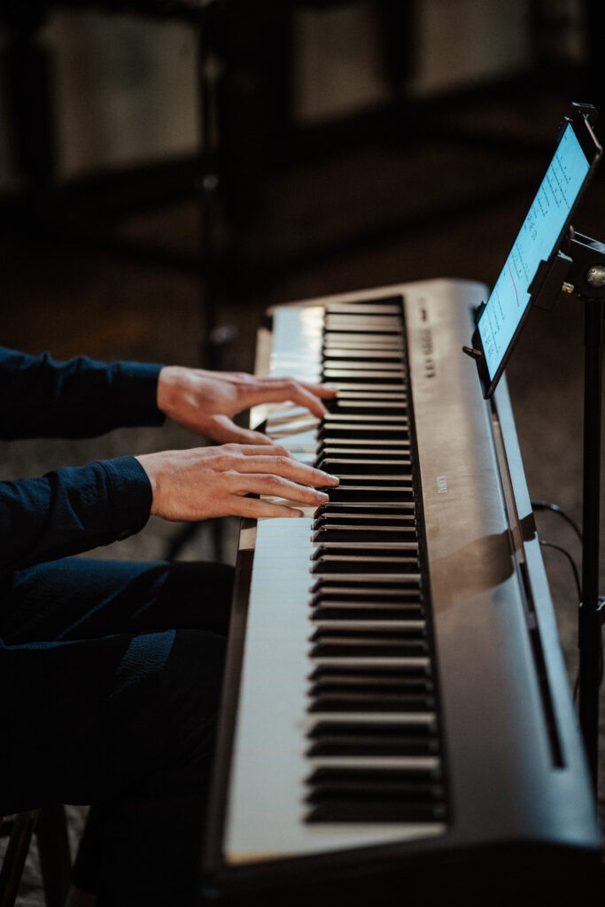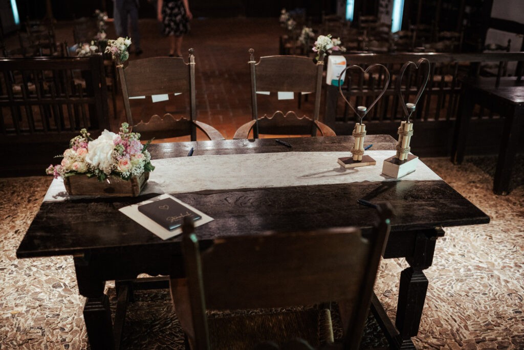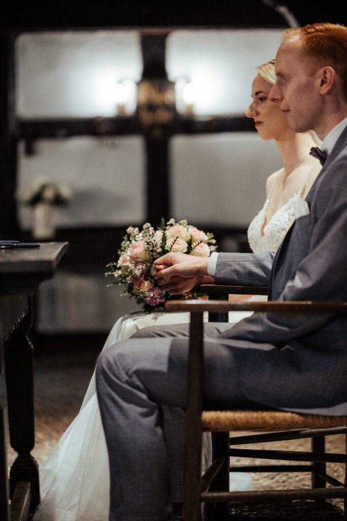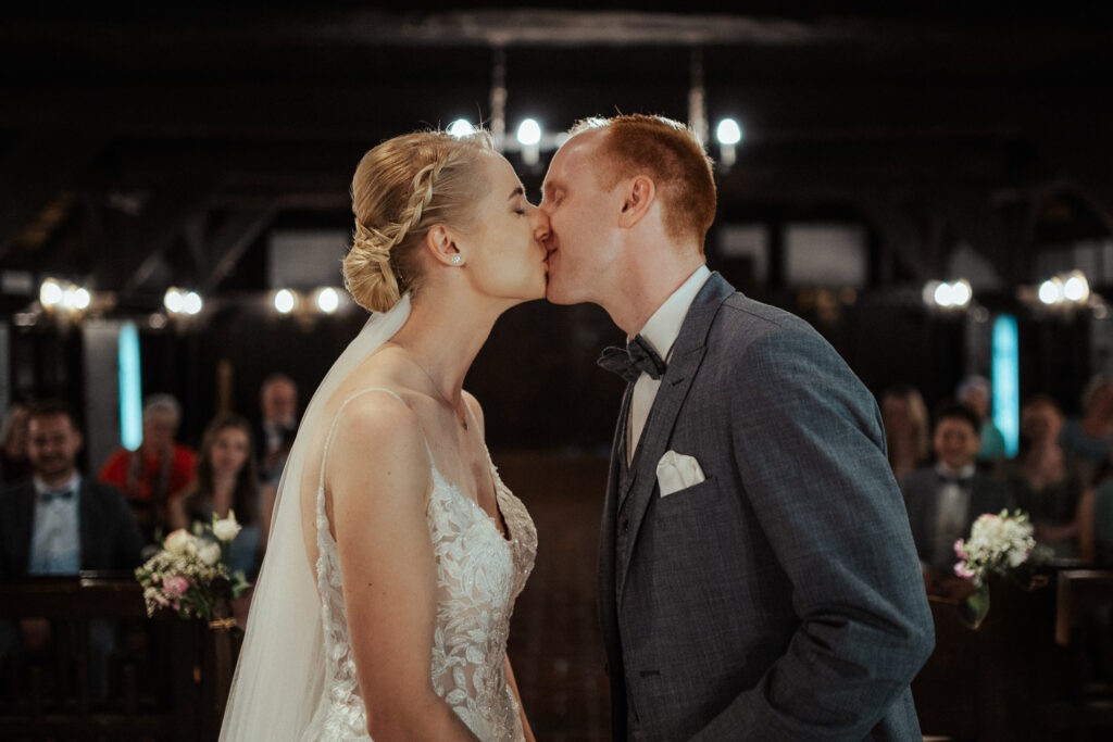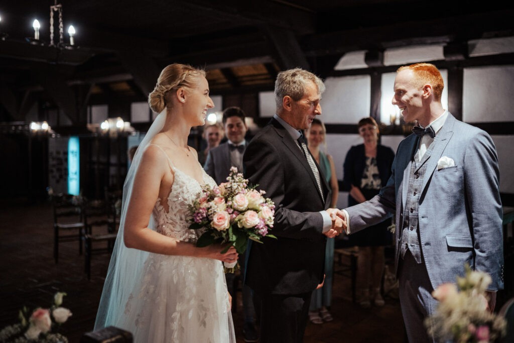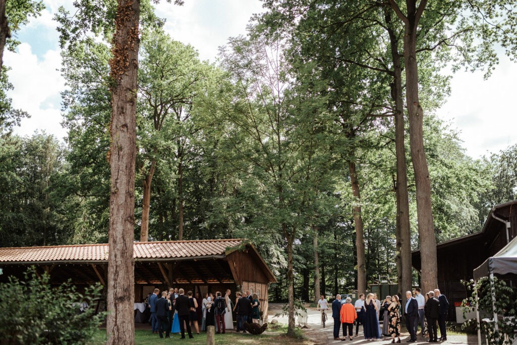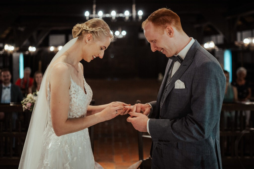 Die standesamtliche Trauung fand ebenfalls im Hof der Heidmark statt. Begleitet von Livegesang und Pianomusik, wurde die Zeremonie zu einem emotionalen Highlight. Die sanften Klänge untermalten die bewegenden Worte und verliehen der Trauung eine besondere, intime Atmosphäre.
