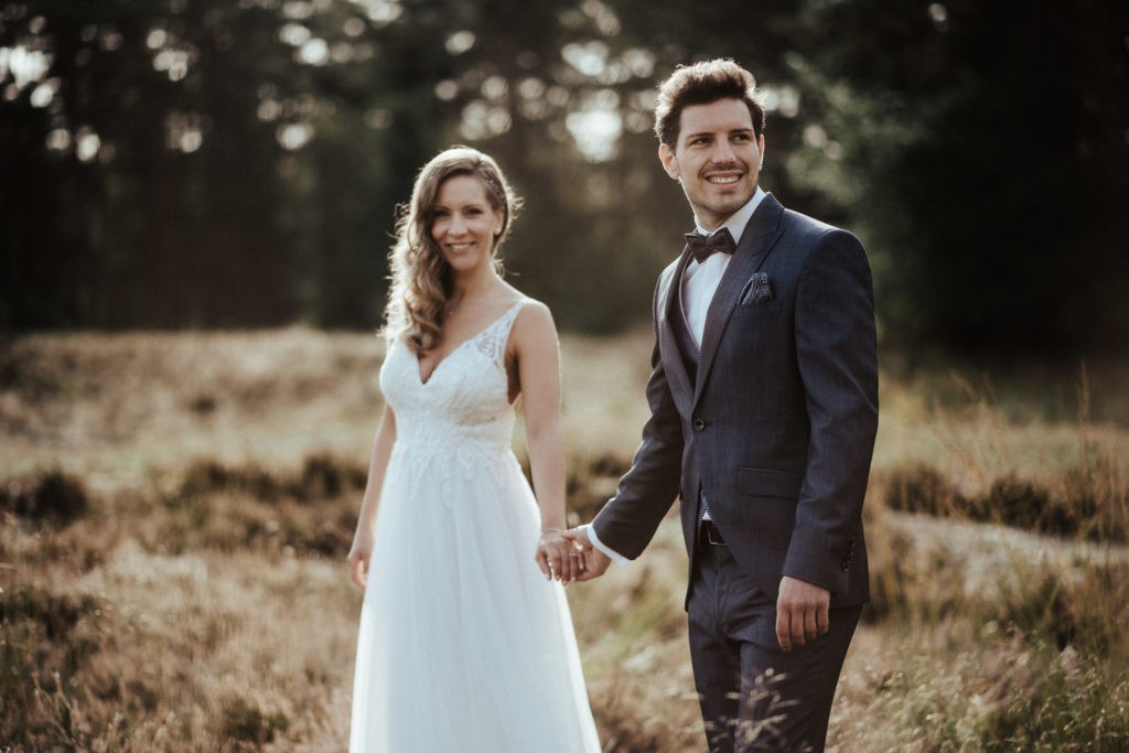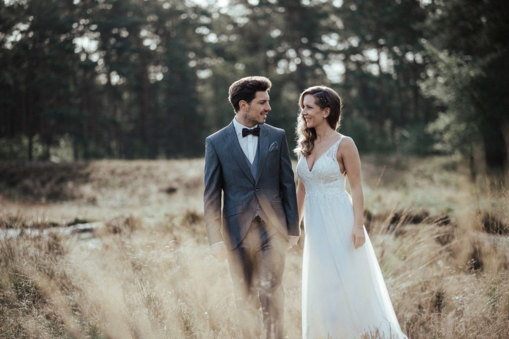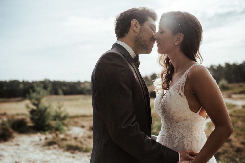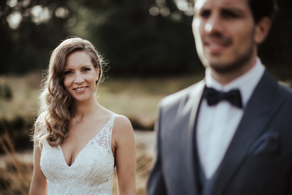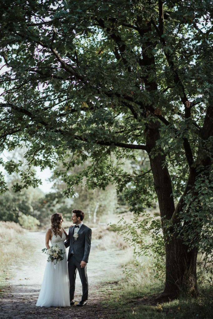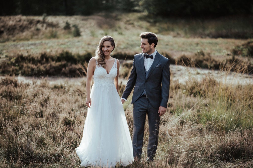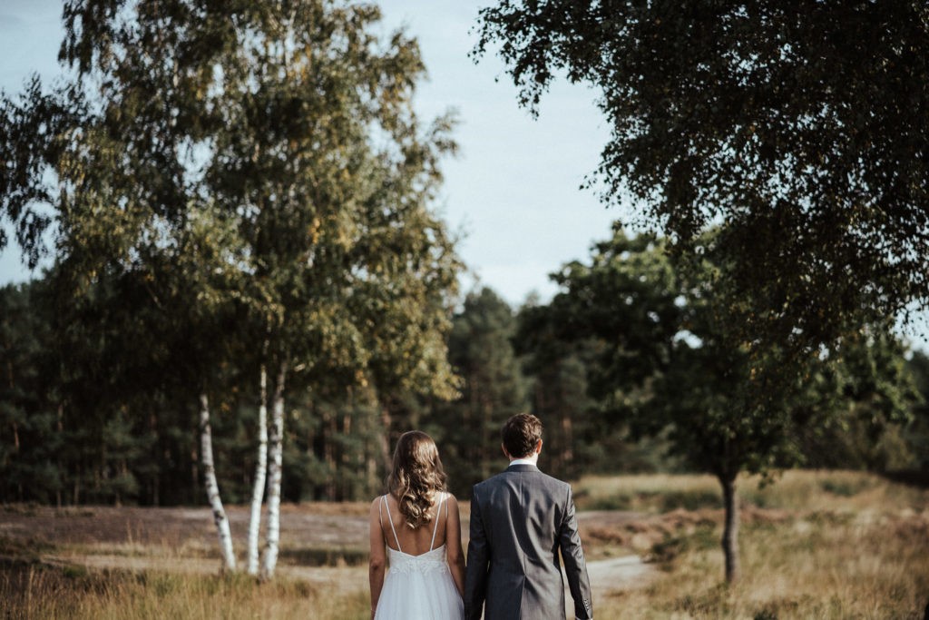 Der Tag begann mit einem magischen First Look in der idyllischen Gifhorner Heide. Der Bräutigam wartete gespannt auf seine Braut, und der Moment, als sie sich zum ersten Mal in ihren Hochzeitsoutfits sahen, war voller Liebe und Freude. Das Brautpaarshooting in der Heide nutzte die malerische Landschaft perfekt aus und schuf romantische und authentische Aufnahmen.