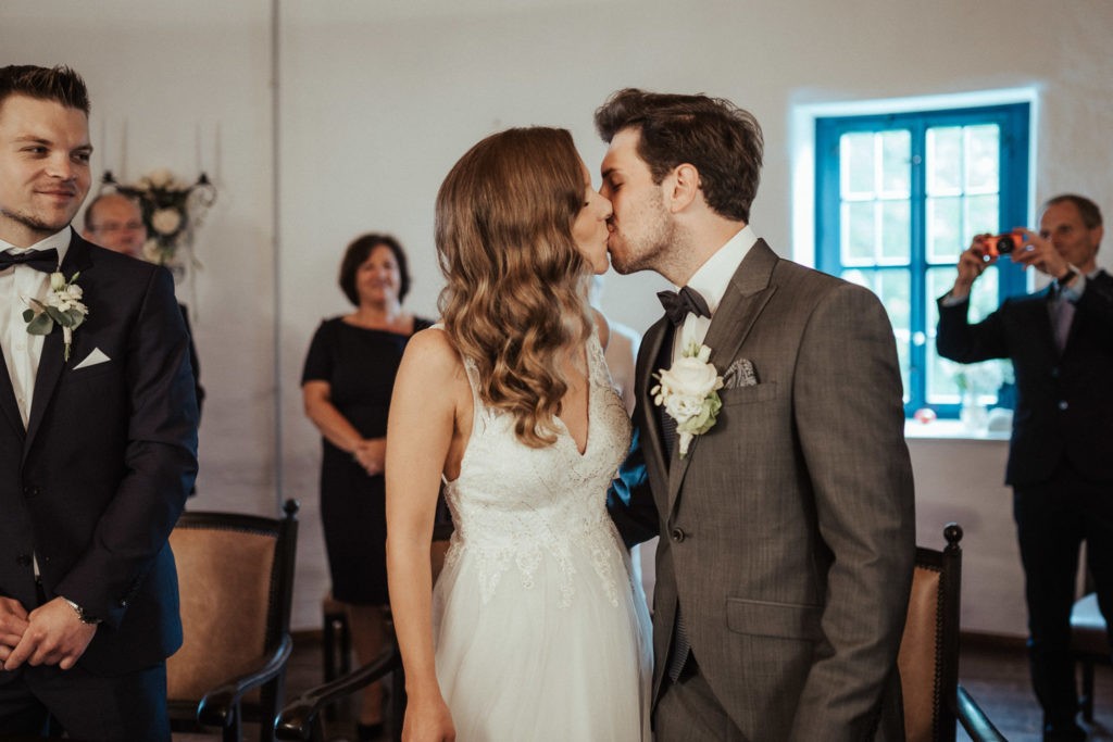 Nach dem zauberhaften Shooting ging es zur standesamtlichen Trauung in die Hochzeitsmühle in Gifhorn. Die historische Mühle bot eine einzigartige und charmante Kulisse für die Zeremonie. Die Atmosphäre war intim und emotional, und die Liebe des Paares war in jedem Augenblick spürbar.